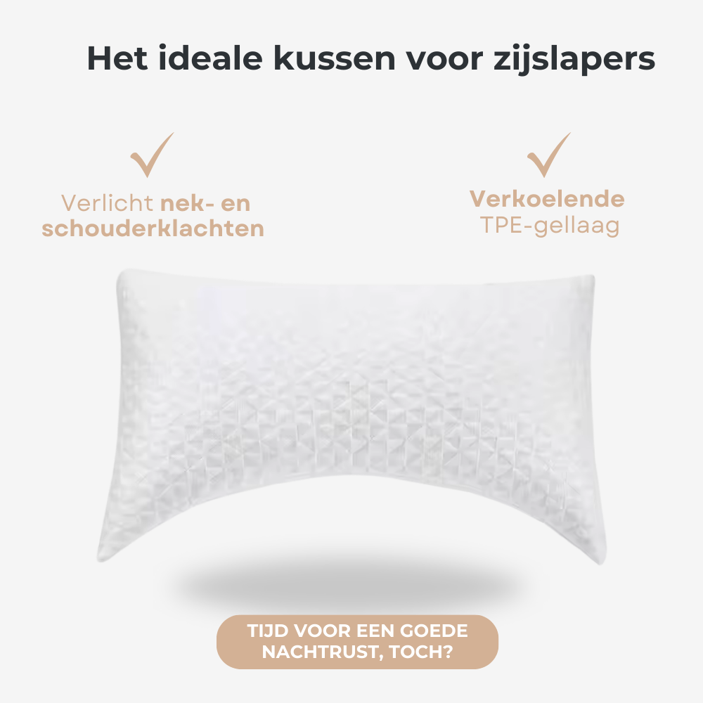 Das Ozypillow ist speziell mit einer einzigartigen Form und einer Schulterausparung entworfen, wodurch es das ideale Kissen für Seitenschläfer ist. Dank dieser cleveren Ausparung erhält deine Schulter immer die richtige Unterstützung, ohne Druckpunkte oder Unannehmlichkeiten.