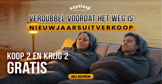 Dankzij de handige voetenflip ben je binnen no time in-en uit de Ozybag. Je stapt in de Ozybag zoals je ook in een broek doet, vervolgens trek je hem omhoog tot je borst. Mocht je er 's nachts uit moeten, stap je uit de Ozybag en rol je deze op tot je middel.